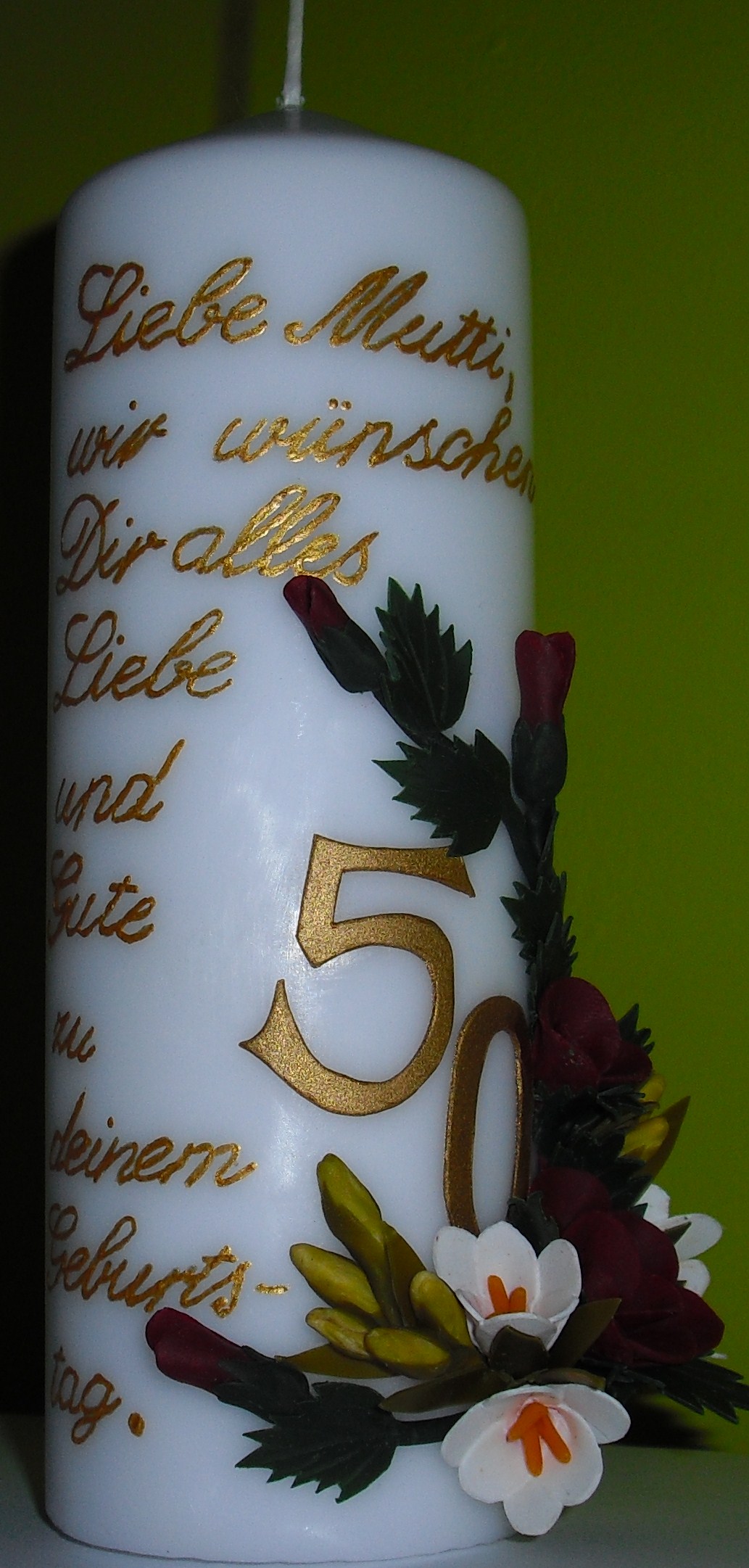 Geburtstagskerzen mit Rosen-Freesienstrauß |