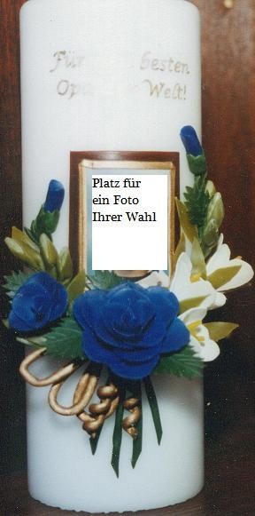 Artikel-Nr.: GB606BLAU-SK15W Höhe: 15 cm Ø: 5,5 cm Kerzenfarbe: weiß Preis: 12,50 €