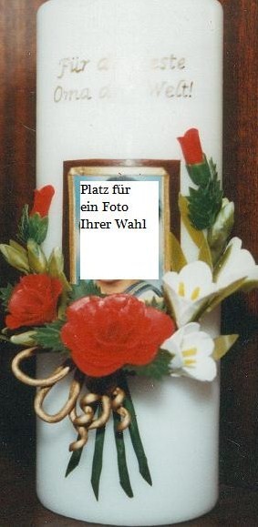 Artikel-Nr.: GK601ROT-KK10W Ø: 10 cm Kerzenfarbe: weiß Preis: 15,- € |
